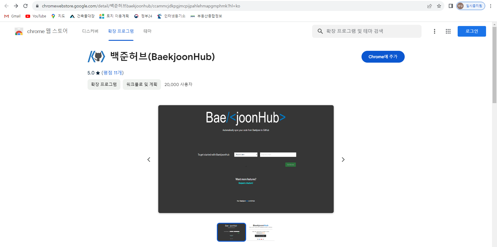 크롬 웹스토어 링크입니다. 들어가서 'Chrome에 추가' 해줍니다.