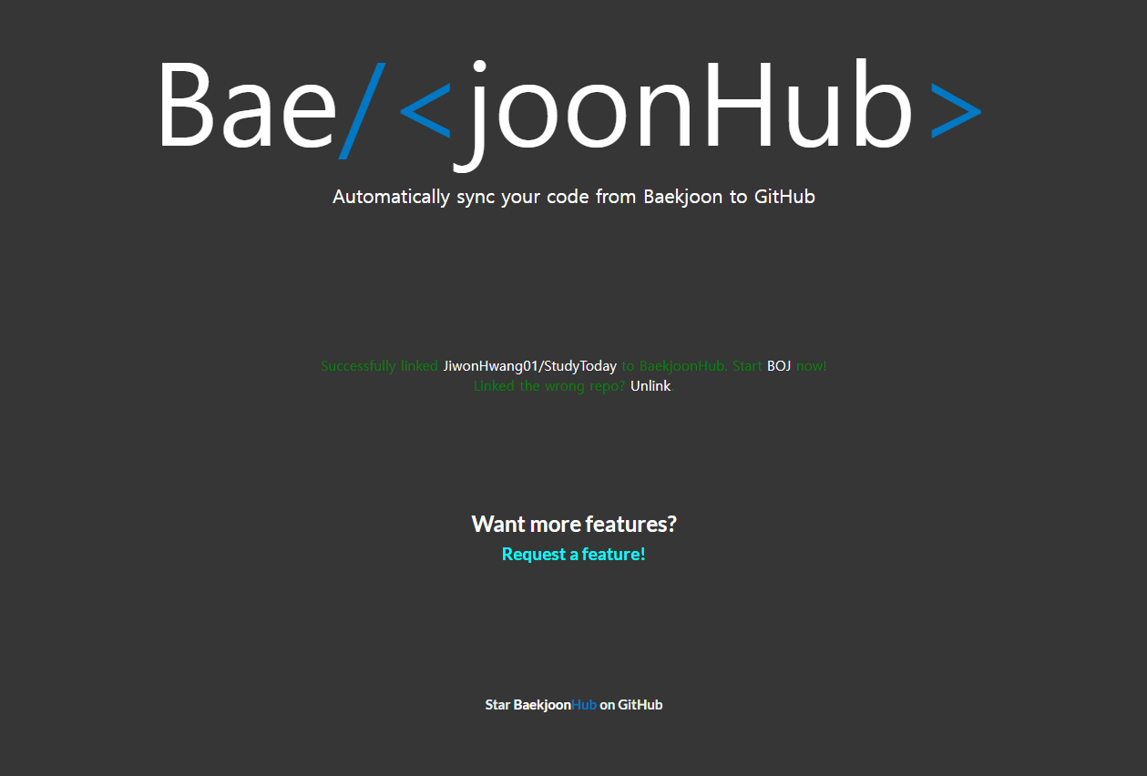 그중 가장 오른쪽 Home 버튼을 누르면 백준 허브 메인 페이지로 이동할 수 있고, Unlink 할 수 있습니다.