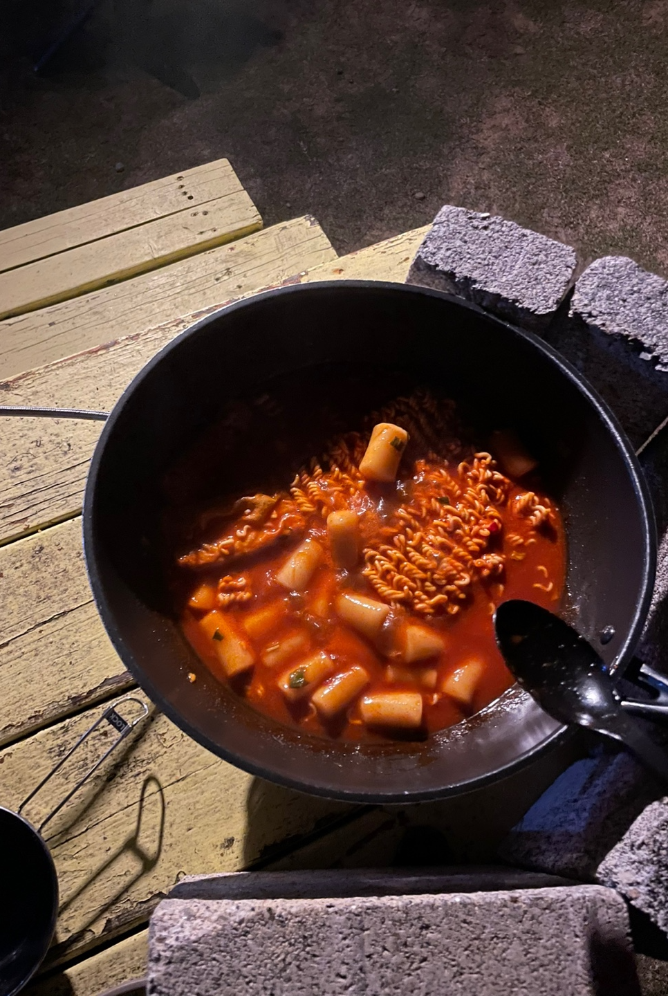 야식으로 라볶이를 먹고 서로의 이런저런 얘기를 했다. 같은 처지여서 서로 공감할 얘기가 많았다. 아 그리고 살고 싶어서 5분에 한 번씩 벌레기피제를 몸에 뿌려댔다. 그렇게 한두 시간쯤 있다가 먹은 걸 정리하기 시작했다. 역할을 나누지도 않았는데 각자 할 일을 찾아서 하고 분업이 잘 됐던 거 같다. 진짜 한 5분? 만에 다 치웠다!