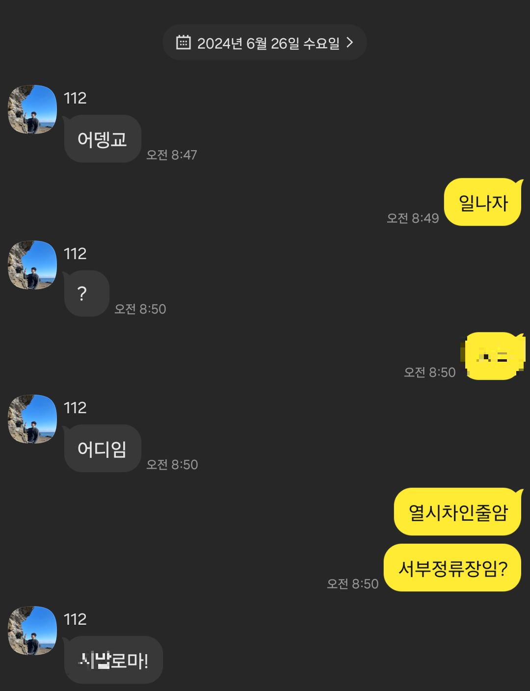 나는 기분 좋게 "일나자" 라고 보냈는데, 친구의 저 물음표가 진짜.. 보는 순간 어떤 느낌이었냐면
